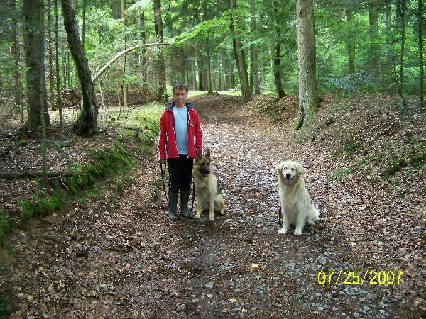 Tony mit unseren Hunden im Bayrischen Wald
